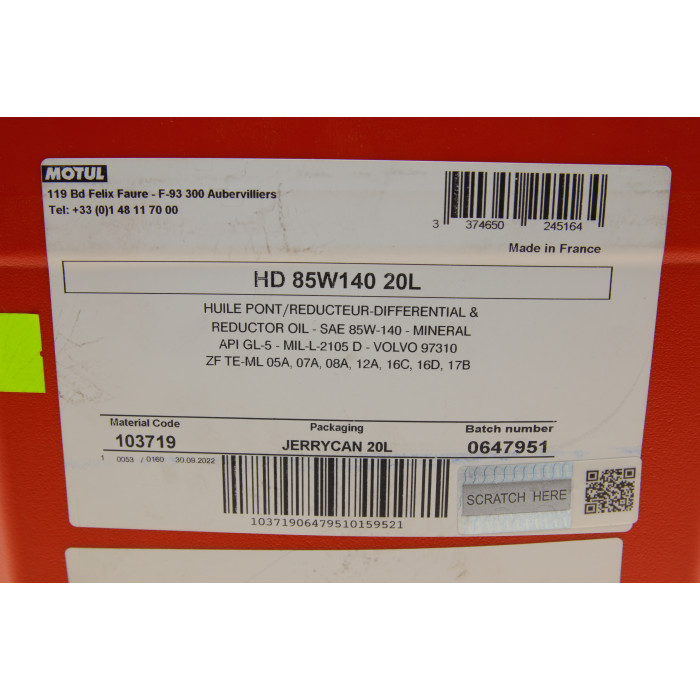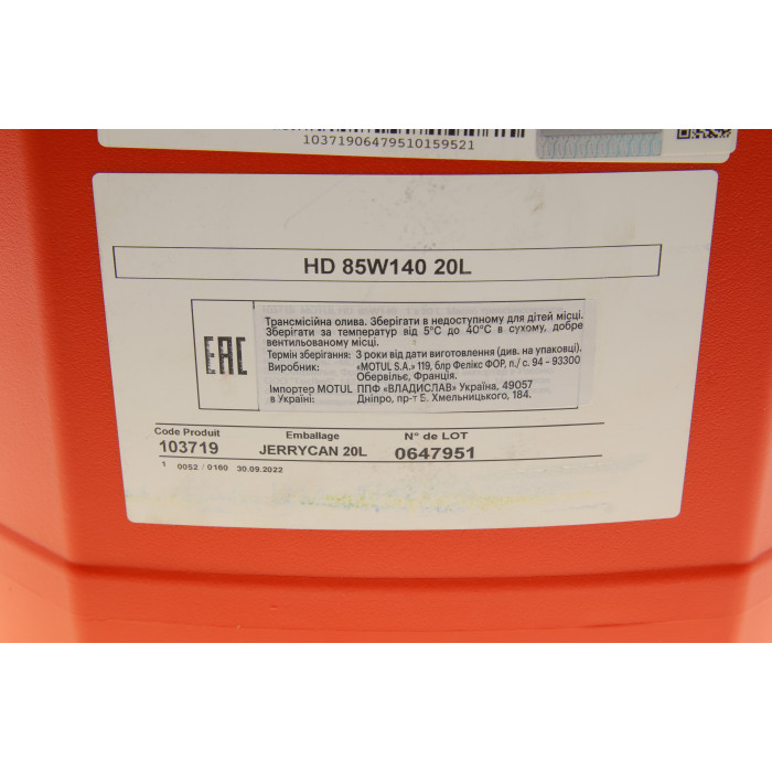 Олива трансмісійна 85W140 HD (20L) (317622) (GL4/GL5/MIL-L-2105D/VOLVO 97310/ZF TE-ML 05A/07A)